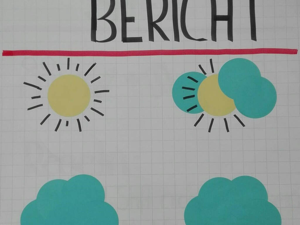 Wenn alle fertig sind, kommen die Zettel an eine Wand (oder schreibt gleich auf ein Flipchart). Ein Freiwilliger